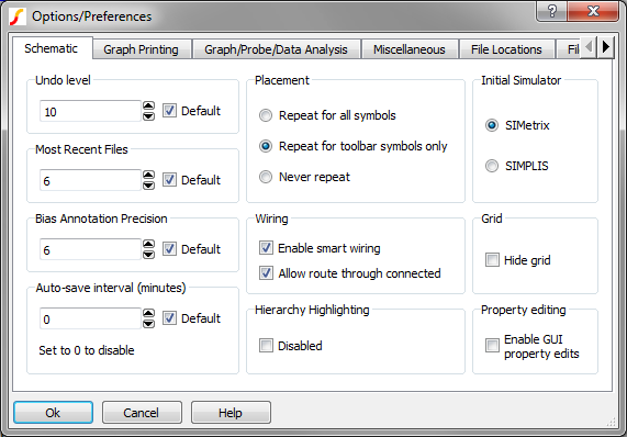 To get started, you will set some global options that will help with this course material. Many of these options will also help in your day-to-day work with SIMetrix/SIMPLIS. Once set, the global options persist and are used to configure SIMetrix/SIMPLIS every time you use the program.