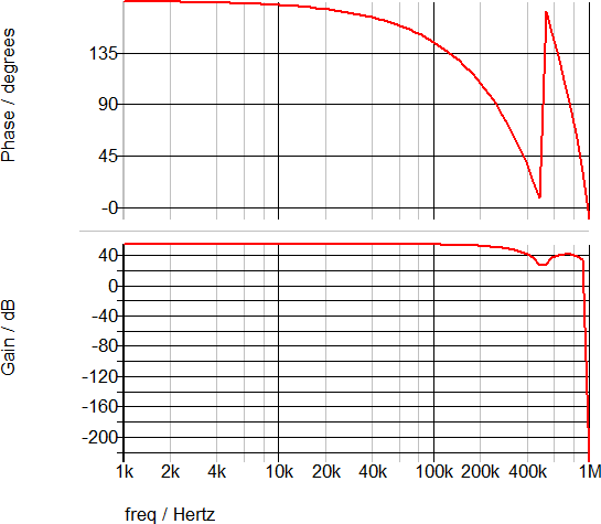 The AC transfer function for the adder is shown below. The DC gain is 54dB, (1/BIN_SIZE).